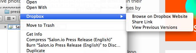 Then right-click on the file on your computer then select 'Dropbox' then 'Share Link'.