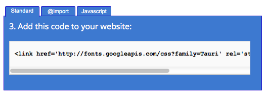 Then go back to the google web fonts page and copy the text under 'intergrate the fonts into your CSS'.